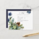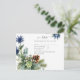Vackra eukalyptusblad, blå tistelblommor, salvia gröna blad, kottar pryder dessa vinterbröllopsdetaljer. Del av en större samling som inkluderar bröllopsinbjudningar till budgetvänliga priser, spara datum-kort, RSVP-kort, tack-fotokort, bröllopsgåvor till brud och bröllopsfest, med mera. För en detaljerad GRATIS guide för vinterbröllopsplanering, besök weddingdesignchic.com.