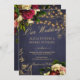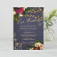 En vacker, traditionell, rustik bröllopsinbjudning för vintersagor med blommor av mörk burgundy, pulserande röd och elfenbensgrädde ro, och peonier, strängar av ljus och ett chic faux kalligraphy-skript över en midnattsblå kritbakgrund. +++++++++++++ inbjudan är även lämpligt för sommartid eller höstnattsfester vid land/utomhusgårdar/gårdshus vid bröllop ceremonier och mottagningar.