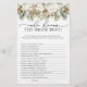 Vinter-Blommigten, som känner Bride the Best Shower Game, fångar den vackra naturen hos ett vinterland och kombinerar känsliga blommigtar och naturligt vintergrönt inslag för att skapa en charming- och elegant-design. Den gröna bladens styrka och motståndskraft skapar en harmonisk balans med blommigtarna. Elegantens kalligrafi ökar formgivningens sofistikering, med ett blomningsskript som speglar blommornas känsliga kurvor. Vare sig du är värd för en möhippa i en mysigt hytt eller en stadsplats i chicen, ger den här designen naturen och vintern till framkant. Matchande objekt är tillgängliga.