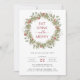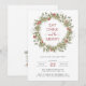Denna eleganta 'äta, dricka och vara glad' högtidsfestinbjudan har vackra handmålade akvarell vintertall, eukalyptus och röda bär arrangerade i en stilren krans med ett elegant handskrivet manus. Hitta matchande föremål i Winter Boho Botanical Berries Collection.