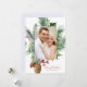 Modern akvarell vinter botanisk grönska, horn, kottar och röda bär platt julkort. Skript "God Jul" och modern teckensnitt används. Lägg till dina favoritfoton och anpassa ditt personliga meddelande.