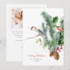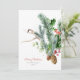 Modern akvarell vinter botanisk grönska, horn, kottar och röda bär platt julkort. Skript "God Jul" och modern teckensnitt används. Lägg till ditt favoritfoto inuti och anpassa ditt personliga meddelande.