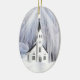 Kyrka i en snövintrige med en stjärna som blazrar briljant ner på den och monstruösa självmord som svävar efter med en trosuppvisning
