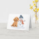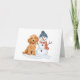 Vinter Goldendoodle Hund Söt Snöman Kort