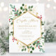 Vintergröna duschinbjudningar i par! Dessa inbjudningar kommer att vara perfekt för en möhippa under vintern eller jultemat! De här inbjudningarna har vattenfärg som färgats grönt med rött innehåll och guld.
