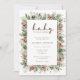 Den här "baby det är kall utanför" babyduschinbjudan innehåller handmålad vattenfärgsgrej och pinekoner arrangerade som ett vackert ram. Texten är brun och bakgrunden vit. I baksidan finns en snyggt som matchar bouquet. Hitta matchande objekt i Pinecone- och Greenery-Helgdag.