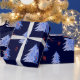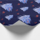 Vinter Ice Blue Träd Holly Berries Navy Jul Presentpapper