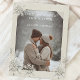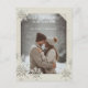 Bjud in din närmaste familj och vänner till en intim firande efter dina privata löften eller bröllop på stadshuset. Skicka ut julpostkort och bjud samtidigt in dem till en mysig bröllopsmiddag. Detta anpassningsbara julpostkort med en romantisk snöig design dekorerad med ömtåliga snöflingor och den söta frasen ”För evigt börjar denna vinter.” Lägg till ditt favoritfoto och anpassa det med namn, datum eller ett hjärtligt meddelande. Perfekt för par som vill ha ett litet intimt bröllop denna vinter.