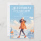 Vinter isdansfest. Brunhårig flicka på utomhusisrinken bland bergen. Konståkningsflicka på utomhusbanan. Födelsedagsinbjudan.