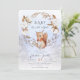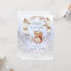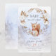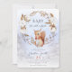 Den här bebis shower inbjudan är söt och enkel. En liten ekorre äter rosehippsbär, som symboliserar glada bebisar, och är omgiven av bomullsblommor. Snö och tallskog i bakgrunden speglar naturens skönhet.