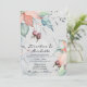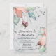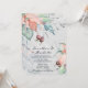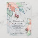 Inspirerande skrift Vinter Bröllopsinbjudan visar en elegant floral vattenfärg blekrosa, lax-färgad julstjärna med blå och gröna blad, röda bär och en blå abstrakt bakgrund rustik design. Baksidan visar en del av Bibelvers Genesis 2:24, "Och de två ska bli ett." Bra val för vinter, jul och högtidsbröllop.