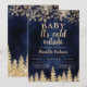 Vinter jul guld snö tall marinblå baby shower inbjudningar