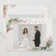 Skicka ett varmt tack med detta vinterliga julromantiska bröllopsfoto tackkort. Med en vacker blandning av romantiska julelement, anpassningsbar mall för bröllopsfoto och elegant julgrönska är detta vykort perfekt för vinterbröllop tackkort, julliga bröllop tacksedlar eller julfoto tackkort. Med mjuka röda och gröna accenter, en mysig vinterstämning och botaniska detaljer är denna design idealisk för par som firar ett julbröllop, vinterfirande eller en romantisk högtid. Helt anpassningsbar med ditt favoritfoto är det det perfekta sättet att uttrycka tacksamhet och skapa ett minnesvärt minne för dina gäster.