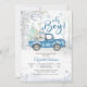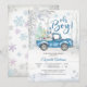 Fira med stil med denna charmiga vinter-baby shower-inbjudan som visar en akvarellblå pickup-lastbil som transporterar en snöman och presenter genom en snöig skog. Den festliga designen blandar rustik charm med säsongsbetonad lekfullhet, vilket gör den perfekt för att hedra en liten pojke på väg. Anpassa med dina evenemangsuppgifter och glädja gästerna med ett unikt, minnesvärt kort som sätter tonen för en glädjefull fest. Denna vintertema baby shower-inbjudan är idealisk för mysiga sammankomster och lägger till en magisk touch till din speciella dag.