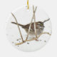 Denna lilla sparv letade efter mat efter en vinterstorm i snö.