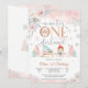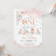 Fira ditt lilla barns milstolpe med denna charmiga vinter ONEderland födelsedagsinbjudan. Med pastellrosa nyanser, snöflingor, tallar och festliga accenter som godisbitar och en släde, skapar denna design en magisk vinterscen. Perfekt för en flickas första födelsedag, den kombinerar elegans med säsongens glädje. Anpassa enkelt med födelsedagsdetaljer för att skapa en souvenir som gästerna kommer att älska.