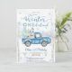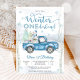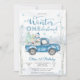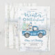 Fira din lilla enes speciella dag med denna charmiga vinter-ONEderland födelsedagsinbjudan. Med en snöig skogsscen med björkar, snöflingor och en vintageblå lastbil som bär presenter och en snöman, fångar denna design perfekt magin i en vinterfirande. Eleganta typsnitt i frostig blå och vit lägger till en festlig touch, vilket gör den idealisk för en första födelsedagsfest. Anpassa enkelt med dina evenemangsuppgifter och skapa ett minne som gästerna kommer att älska.