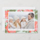 Skicka högtidliga hälsningar till vänner och familj i chic stil med våra eleganta fotokort. Ditt horisontella eller liggande foto ramas in i vitt och omges av handmålade akvarell röda peonblommor och grönska. Personliggör med din egen hälsning (visas med "Kärlek och Glädje") och familjenamn nedanför ditt foto.