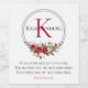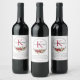 Vinter Röd Blommig Anpassad Monogram Namn på Vit Vinflaska Etikett