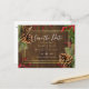 Vackra röda bär och rustika tallkottar pryder denna vinterbröllopsdetalj som är en del av en större samling som inkluderar bröllopsinbjudningar till lågt pris, spara datum-kort, RSVP-kort, etiketter, presenter, brevpapper med mera. För en GRATIS guide för planering av vinterbröllop besök weddingdesignchic.com.