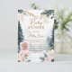 Välkommen gäster till en förtjusande fest med denna rosa skogsbjörn bebisfest-inbjudan, perfekt för att hedra den blivande mamman. Med en söt björn iklädd en mysig rosa outfit mitt i en charmerande skogsmiljö med tallar och mjuka blommiga accenter, fångar denna inbjudan essensen av en vintersagovärld. Designen är accentuerad med känsliga akvarellillustrationer i nyanser av rosa och grönt, som skapar en varm och fantasifull atmosfär. Anpassa med alla evenemangets detaljer och skapa tonen för en söt och minnesvärd bebisfest med denna underbara inbjudan.