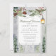 Vinter Rustika Tallar Botanisk Lykta Övningsmiddagsinbjudan. Vackra eleganta vinterbröllopsinbjudningar med snöig lykta med rustika botaniska tallgrenar och tallar . Denna anpassade moderna bröllopsdesign kan enkelt anpassas med dina egna bröllopsdetaljer.