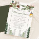 Vinter Rustika Tallträd Botanisk Lykta Övningsmiddagsinbjudan. Vackra eleganta vinterbröllopsinbjudningar till övningsmiddag med snöig lykta med rustika botaniska tallgrenar och tallar . Denna anpassade moderna bröllopsdesign kan enkelt anpassas med dina egna bröllopsdetaljer.