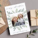 Festiv och elegant i skuggor av blekens grönt, gråfärgad jade och vit, vårt fotokort för vinter-helgdag har din favoritbild i kvadraten som är inramad av skisserade botaniska löv av grönten. "God jul" visas överst i den moderna kalligrafiskriptbokstavstexten. Anpassa till anpassningsbarna hälsning, familjen namn eller namn och år längs grund.