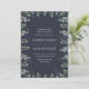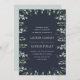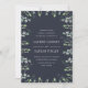 Målade vattenfärgsgreenergiy ramar dina bröllop-uppgifter i vår Winter Sage bröllop-samling. Elegantens utformning har en rik marin blå bakgrund med isigens blek grönt botaniskt blad och vita bokstäver.