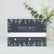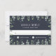 Designat för att samordna med vår vinter salviahälsningsserie, detta eleganta botaniska svarskort har handritad akvarellbladverk och grönska som ramar in ditt önskade svarsdatum och anpassad accept- och avböjandetext. En djup, rik navyblå bakgrund ger kontrast och en lyxig look för vinterbröllop.