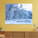 Bilden fångar en serenvinter-scen med en förgrund av träd och grenar som täcks av snö. Träd är obarmhärtigt, deras grenar lastad med färskt snö och skapar ett känsligt och komplicerat mönster. Marken är täckt av pristina vita snö, med fallna grenar som lägger till en liten bit struktur.