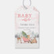 Dessa söta vinter skogsflicka rosa baby shower gunst taggar är perfekta för en bebis det är kallt utomhus tema shower. Designen har vackra akvarell skogsdjur i en släde omgiven av berg träd och snöflingor som den blivande mamman och gästerna säkert kommer att älska. Personifiera med namn och datum.