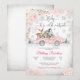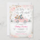 Fira en magisk vinter-baby shower med denna charmiga skogsinbjudan med en rosa vintage-lastbil som transporterar söta skogsdjur, pastellfärgade ballonger och festliga snöflingor. Den eleganta blandningen av kursiv och serifferad font ger en sofistikerad touch, medan den mjuka pastellfärgade bakgrunden skapar en mysig säsongsbetonad känsla. Perfekt för vinterfirande, denna inbjudan kombinerar rustik skogscharme med festlig högtidsstämning, vilket gör den idealisk för att hedra en blivande mamma under de kallare månaderna.