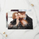 Detta eleganta hjärtmanus foto spara datum kortet innehåller ditt foto och ett manus spara datum ovanför era namn, datum och lokal. Baksidan har ett extra foto och meddelande på en vinter snöflingor bakgrund. Designad av Thisisnotme©
