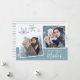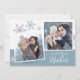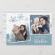 Det här 2-fotojulkortet erbjuder ett snöflingtema i färg av lila, dammig teal och grått. Hälsning lyder "varmaste Önskemål".