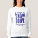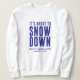 Rolig vit och blå Det är på väg att snöa ner sweatshirt för vinter / skid tematisk samsas fest. Anpassa den med dina evenemangsuppgifter och ändra färgerna.
