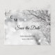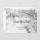 Eleganta och moderna Spara datumet-kort för att skicka till dina gäster. Svart kalligrafi med vintersvårslandskap. Personliga mallar online för enkel redigering. Lägg till din text på framsidan och baksidan av kortet. Kontakta formgivaren för specialförfrågningar.