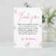 Tackkort för en kids födelsedagsfirande med en rosa snöflinga. "Tack snö mycket för att du gjorde min födelsedag så underbar,"