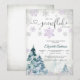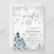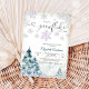 Fira ankomsten av din lilla en med denna förtrollande vinter snöflinga barnkalas inbjudan. Med skimrande lila och silver snöflingor, akvarell gröna träd och elegant typografi, fångar denna design magin i en snöig sagovärld. Perfekt för vintertema barnkalas, den blandar whimsisk charm med tidlös stil. Anpassa med dina detaljer för att skapa en minnesvärd souvenir för gästerna.