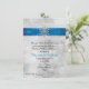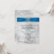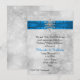 Elegant vinterbröllopsmiddagsinbjudan med vit och ljusgrå glänsande bakgrund. Grafik med ett rikt azurblått sidenband med vita spetskanter löper över toppen av inbjudan och är dekorerad i mitten med en silvertonad och diamantliknande snöflinga. Anpassa den svarta och azurblå texten efter dina behov. Välj mellan många olika kortalternativ för det utseende du gillar bäst. Matchande svarsblankett och kuvert tillgängliga.