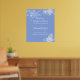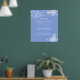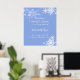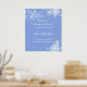 Elegant blå bakgrund med söt snöflingor och mousserande stjärnor. Perfekten poster för Winter Wonderland bröllop. Välj en mindre storlek till ställe på varje bord. Skapa ett eget välkomsttecken för din familj och dina vänner genom att anpassa text och teckensnitt. Tillsätt lite glitz och glam genom att kabba vitt lim och sprinkla med glitter. Bakgrunden färg kan ändras till vilket färg som helst.