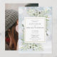 Med känsliga akvarellblad grönska på en vinterfrostbakgrund, kan denna enkla moderna botaniska förlovningsfestin inbjudan anpassas med dina speciella förlovningsdetaljer, med ditt foto på baksidan. Designad av Thisisnotme©