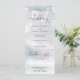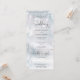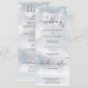 En allt-i-ett bröllopsinbjudan med elegant hjärtskrift typografi på en vinter snöflingor bakgrund. Inbjudan inkluderar ett RSVP-kort som kan klippas av och detaljer om gästinformation. Designad av Thisisnotme©