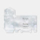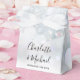 Elegant bröllopspresentförpackning med stilren signatur skrift namn och speciellt datum i modern typografi på en vinter snöflingor bakgrund. Du kan anpassa med ditt eget tackmeddelande under locket. Ett perfekt sätt att tacka dina gäster! Designad av Thisisnotme©