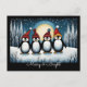 Vinter Snöig Natt Tomte Pingvin Jul Helg Vykort