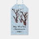 Vinter snöscen design har en bild av en skog med kala träd under vintern täckta med snöflingor. Bakgrunden är en blekblå färg. Texten under bilden lyder "May All of Your Christmases be White!". Baksidan har gott om utrymme för att skriva namnen på givare och mottagare. Designad för att koordinera med det julpapper med vinterträd.