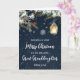 God jul för underbart dotterdotterkort med rustisk vinter-löv och land-snöbakgrund.