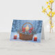 Ett söt vintersolkort med ljus i snö, poinsettias i naturen.
