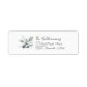 Rustik klassisk vinter med denna tallkvist med snöiga tallkottar. Namn och adress i script i handskriven stil.