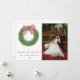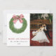 Julkrans av vintertall med randig röd slinga Glad och gift fotobild julkort - Skicka dina första jul- och högtidshälsningar som nygifta herr och fru till vänner och familj med denna redigerbara julfotokortsmall. Funktionen är en handmålad enkel julkrans av vintertall med randig röd slinga. Personifiera detta klassiska julkort genom att lägga till ditt familjenamn och år, favoritfoto och anpassat meddelande på baksidan.